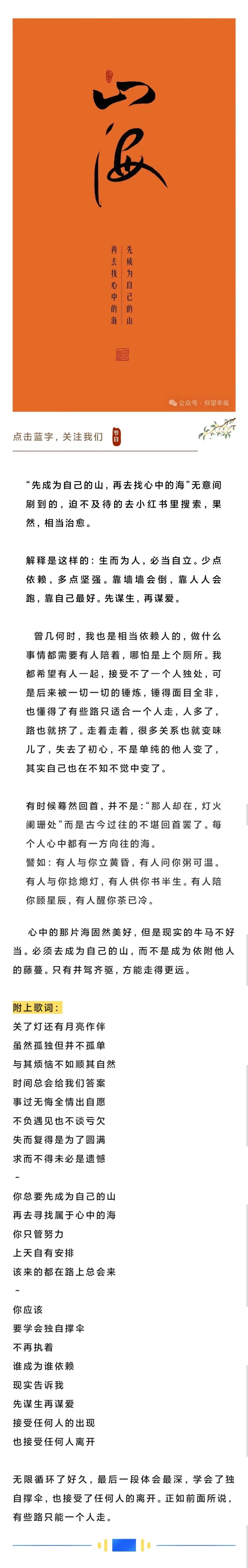 先成為自己的山,再去找心中的海