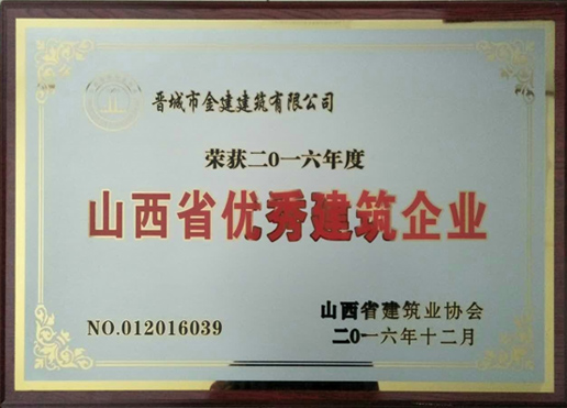 近日從省建筑業(yè)協(xié)會傳來喜訊,晉城市金建建筑有限公司榮獲2016年度山西省建筑企業(yè)。